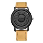 Elegance redefined with a bold modern twist. This timepiece combines a unique rotating Roman numeral dial with a premium leather strap, making it both stylish and comfortable. The contrasting black dial and tan leather strap create a striking balance between classic and contemporary design.